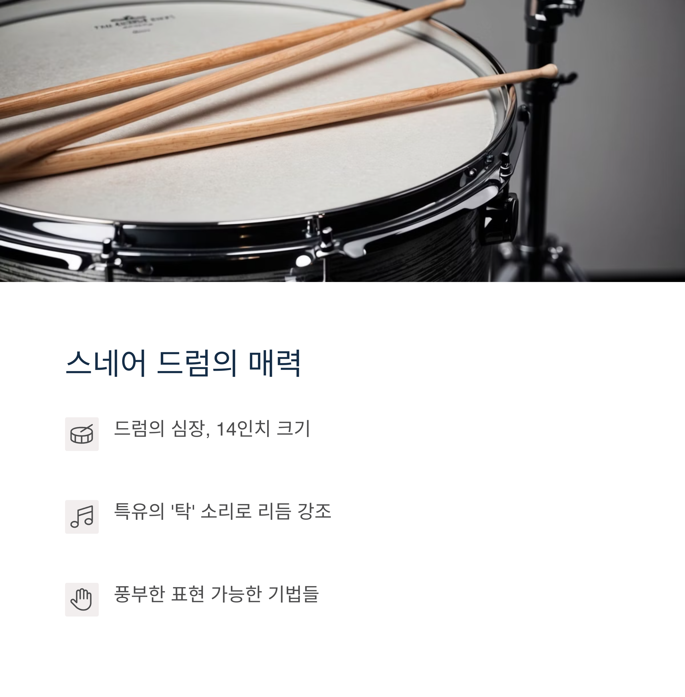 | 왜 중요할까? | 음악의 리듬과 템포를 주도하는 핵심 악기입니다. |