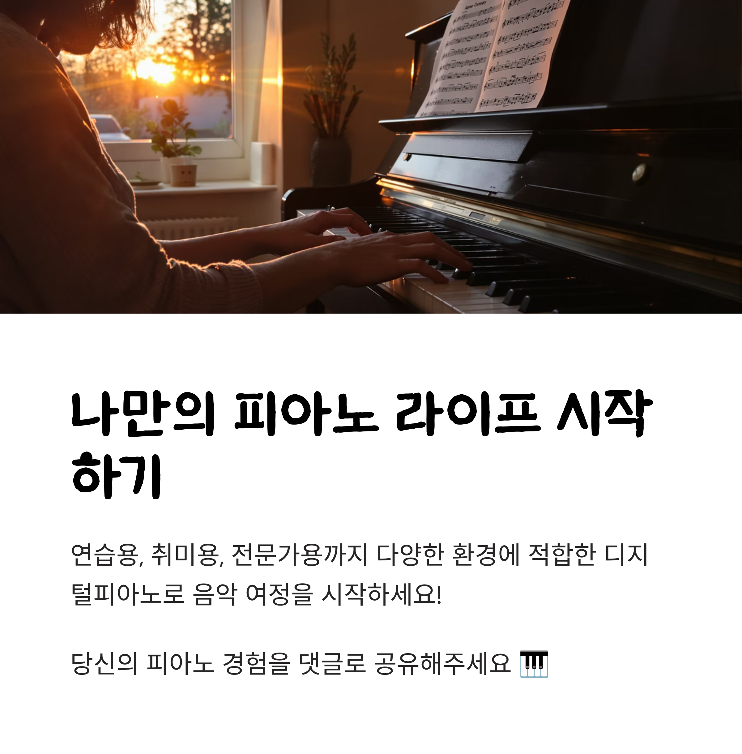 디지털피아노는 이제 단순한 대체 악기가 아니라, 다양한 연주 환경과 라이프스타일에 맞춰 선택할 수 있는 필수 아이템입니다. 야마하, 가와이, 삼익, 다이나톤 등 브랜드별로 디지털피아노의 특징과 가격, 중고시세를 꼼꼼히 비교해보시고, 자신의 용도와 예산에 맞는 최적의 디지털피아노를 선택해보세요. 디지털피아노의 발전과 함께 여러분의 음악 생활도 한층 더 풍성해질 것입니다.