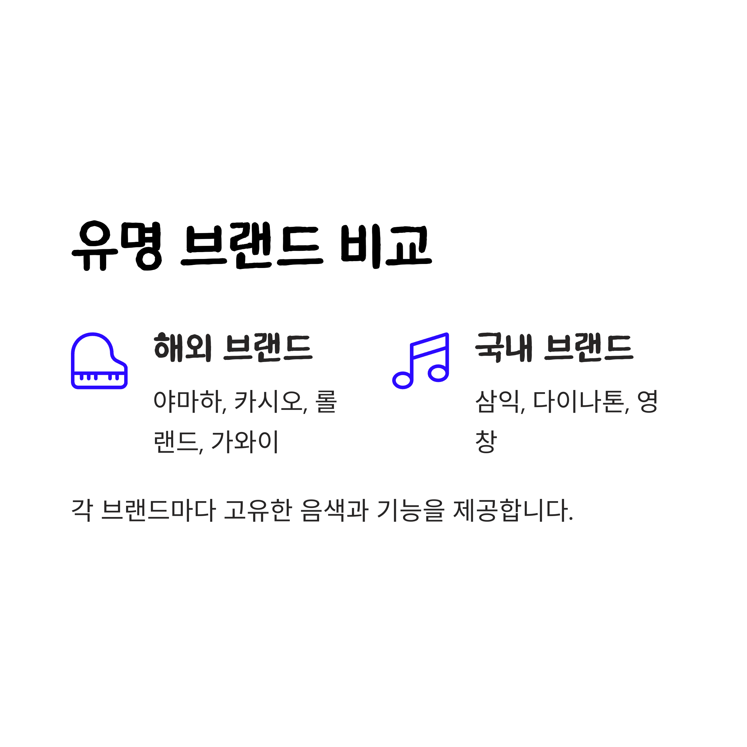 | 70만~150만 | 야마하 YDP, 가와이 KDP, 삼익 고급형 | 본격적인 연주, 레슨용 |