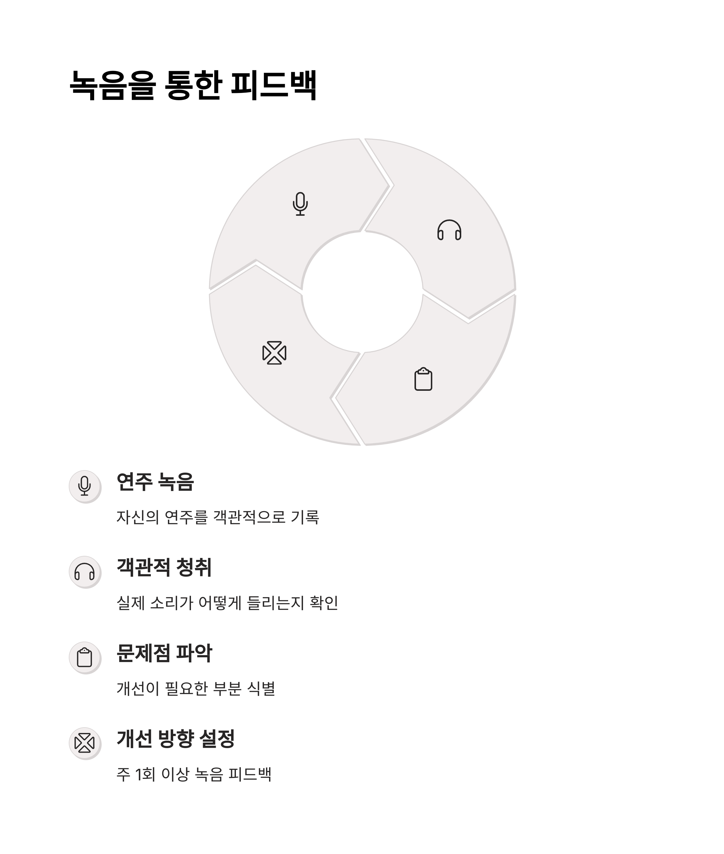 스마트폰 앱 또는 전자 튜너 사용 추천 매일 루틴으로 연습 시 빠르게 정착 가능 녹음 후 피드백 방법 병행 시 효과 극대화