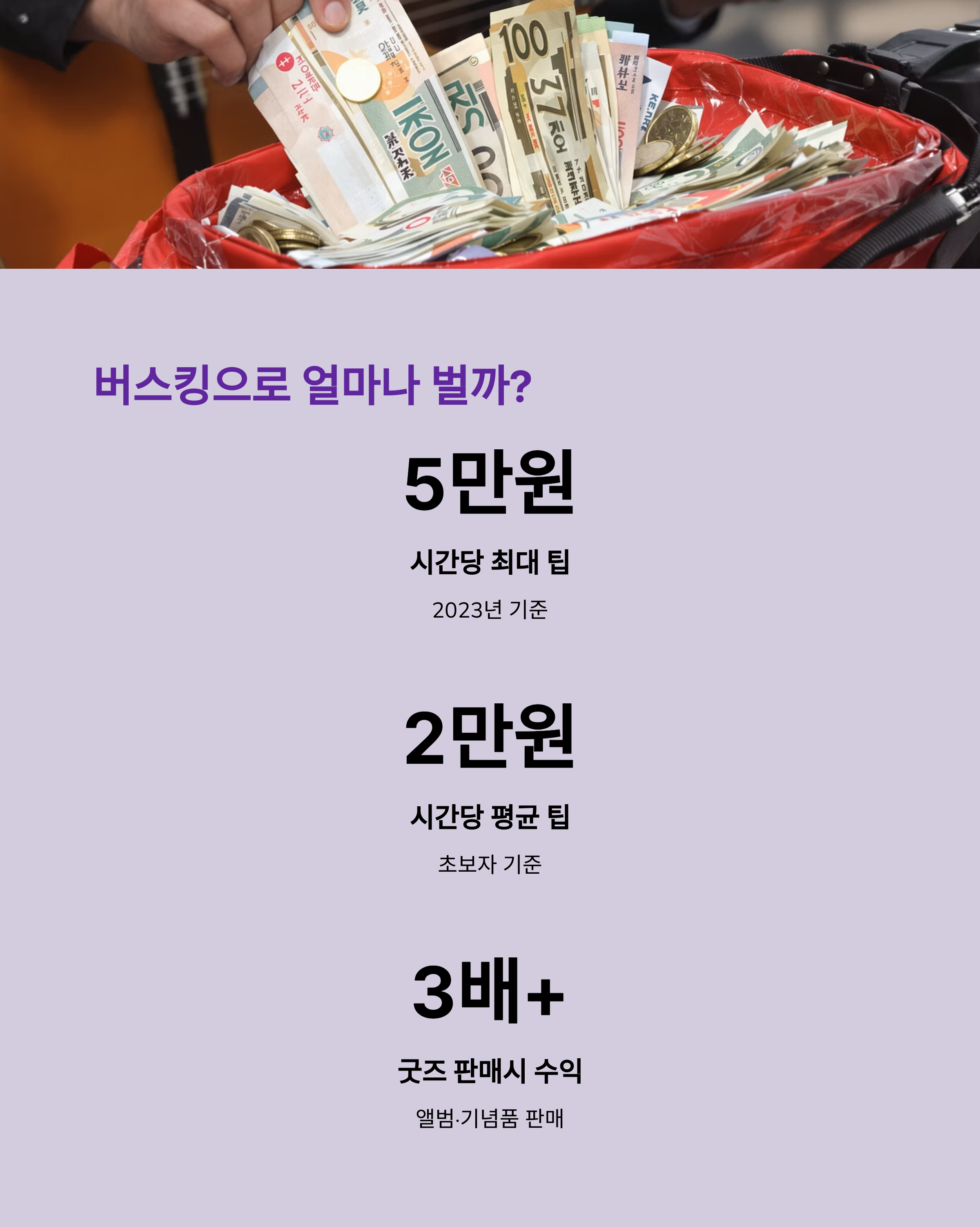 버스킹의 주요 수익원은 관객의 팁(후원)입니다.