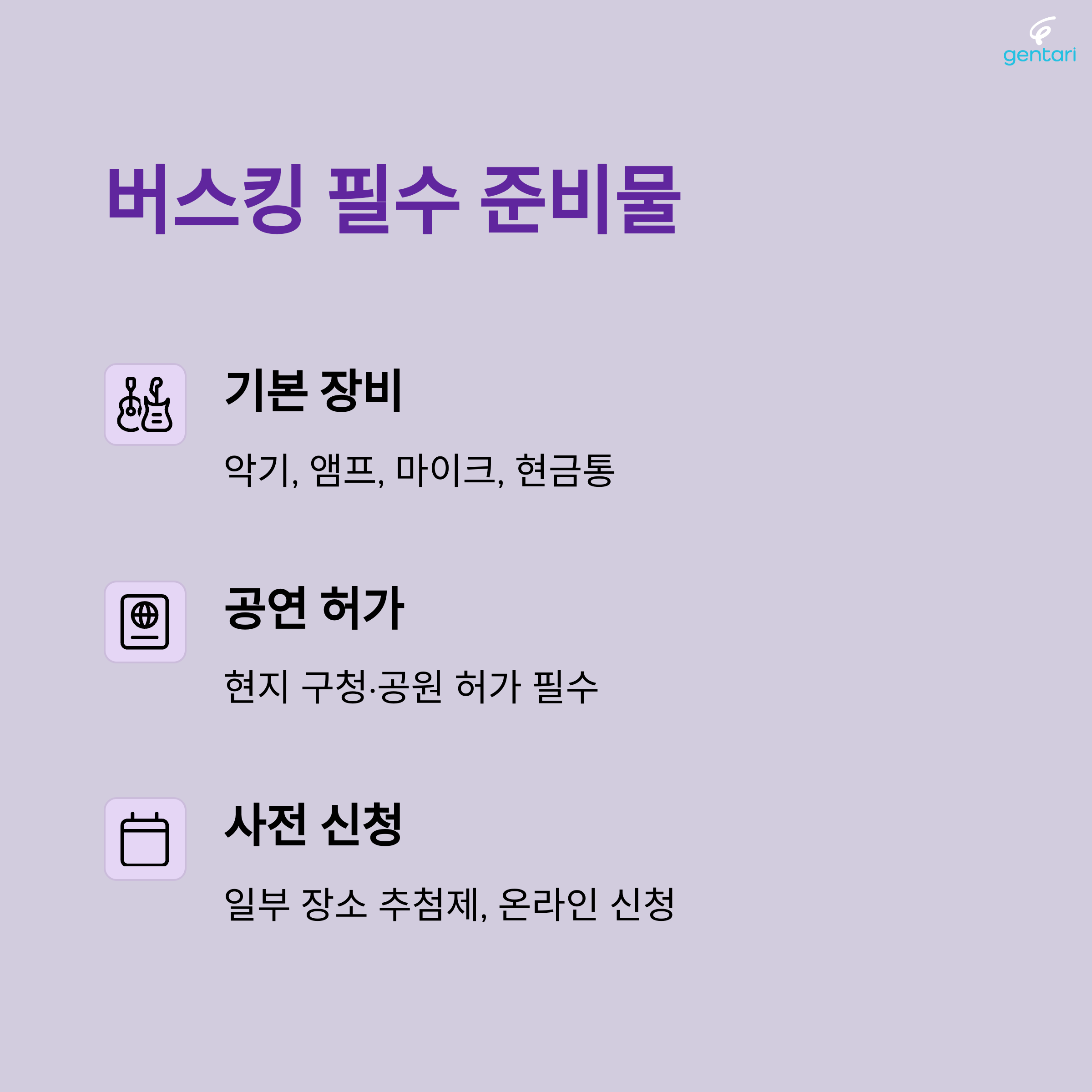 - 공식 버스킹존(예: 한강공원 22개소)은 무료로 무대 예약 가능
