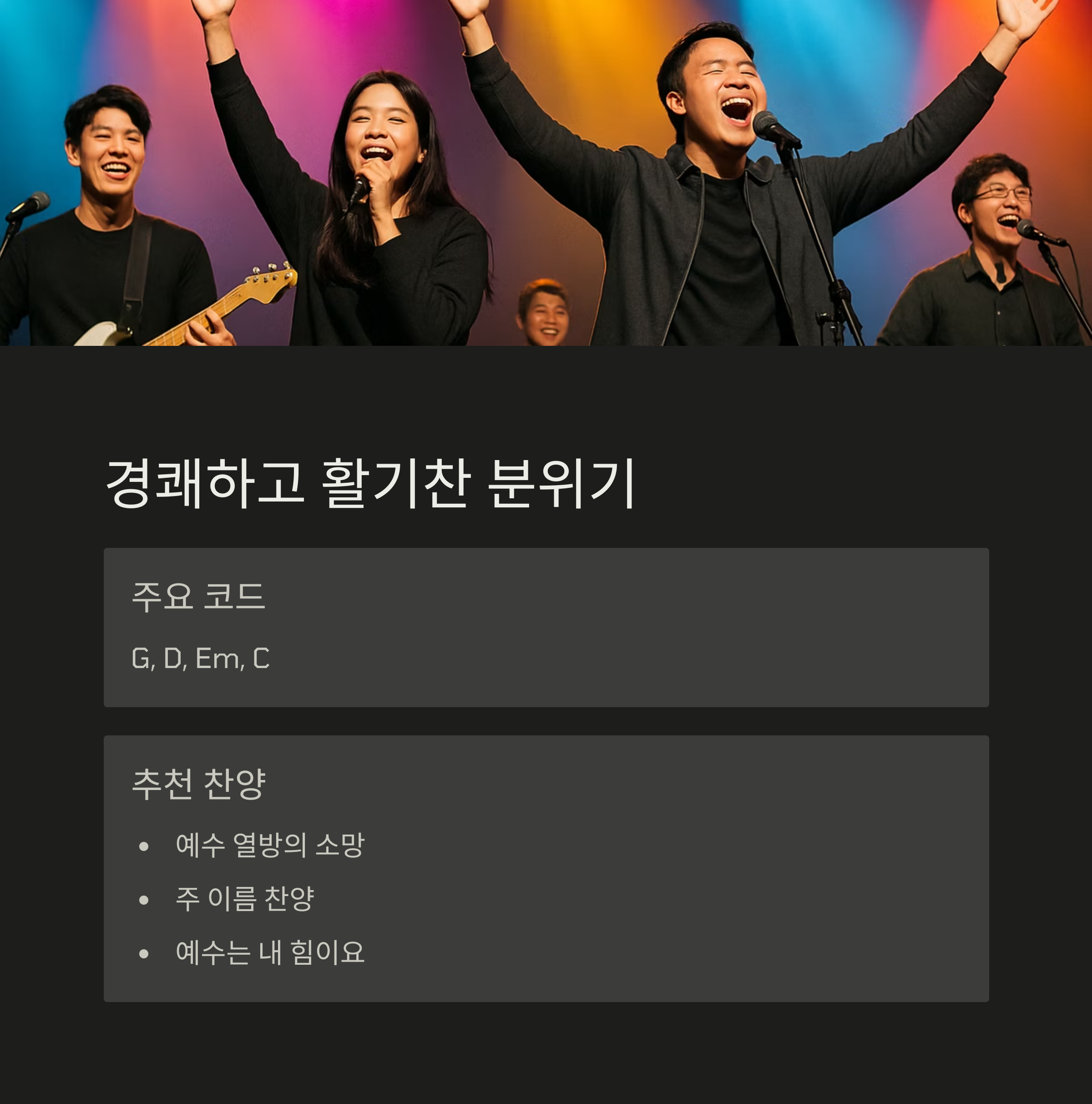 분위기별 찬양 코드 추천 – 은혜롭고 경쾌한 예배에 어울리는 코드 구성