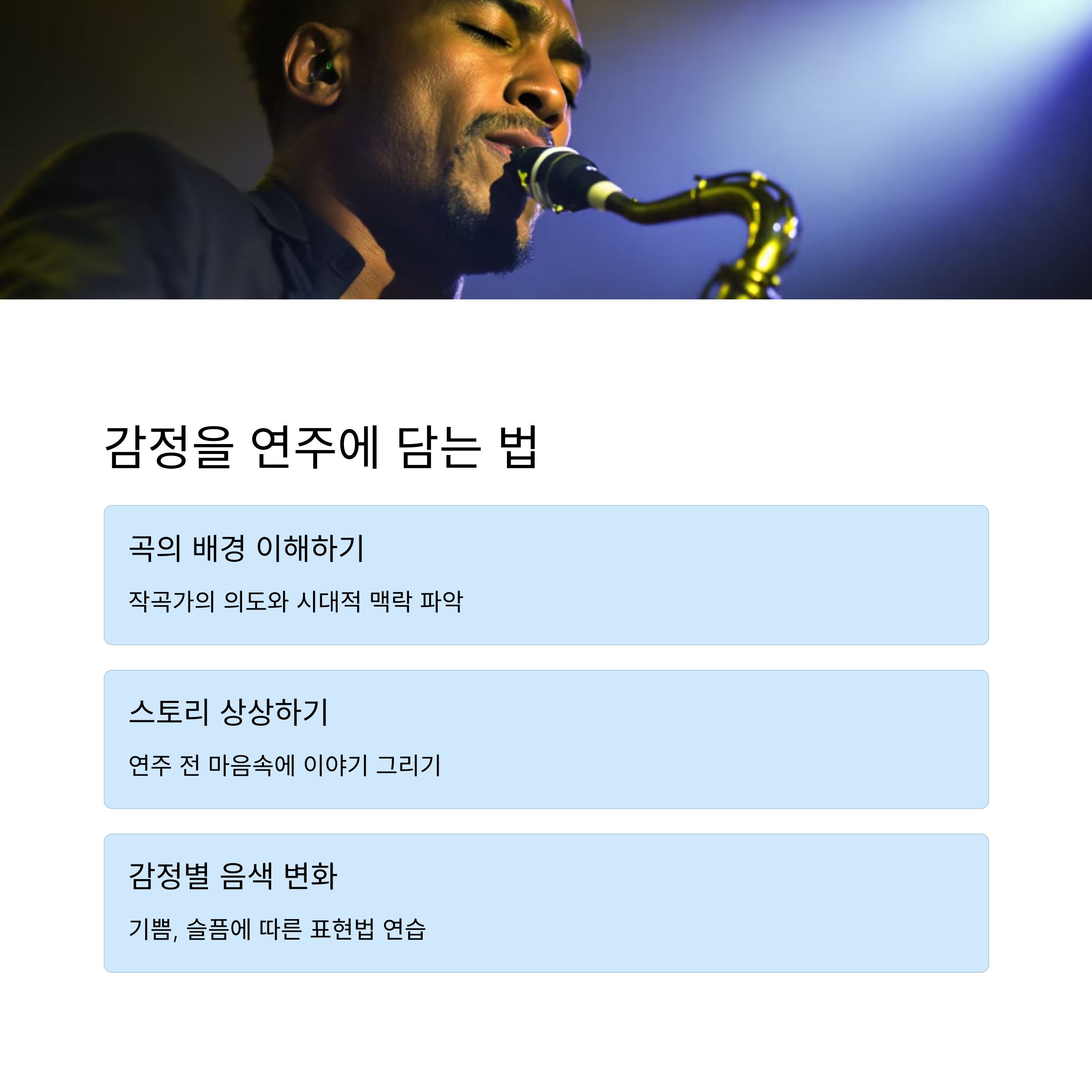 여러분만의 색소폰 연주 팁이나 감정 표현 노하우가 있으신가요? 댓글로 자유롭게 공유해 주세요. 서로의 경험이 더 나은 연주로 이어질 수 있기를 바랍니다!