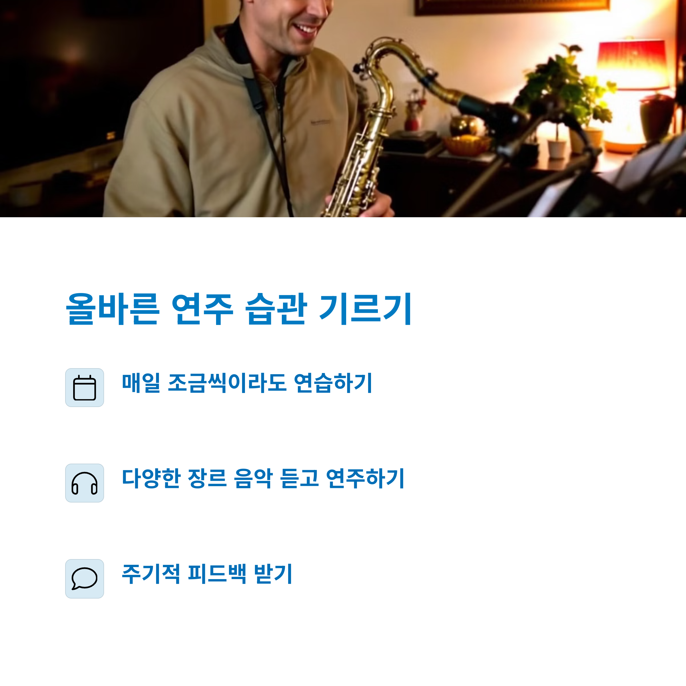 색소폰을 시작하는 길은 결코 쉽지만은 않지만, 그만큼 보람 있고 즐거운 여정입니다. 처음 악기를 손에 쥐었을 때의 설렘, 첫 음을 낼 때의 떨림, 첫 곡을 완주했을 때의 감동. 이 모든 순간은 노력으로 채워져야 가능한 결과입니다. 이번 글을 통해 여러분이 조금 더 명확한 방향성과 실질적인 팁을 얻으셨기를 바랍니다. 음악은 삶을 풍요롭게 해주는 아름다운 도구입니다. 색소폰이 여러분의 일상 속에 따뜻한 감성과 특별한 여유를 선물해주는 멋진 친구가 되길 응원합니다.