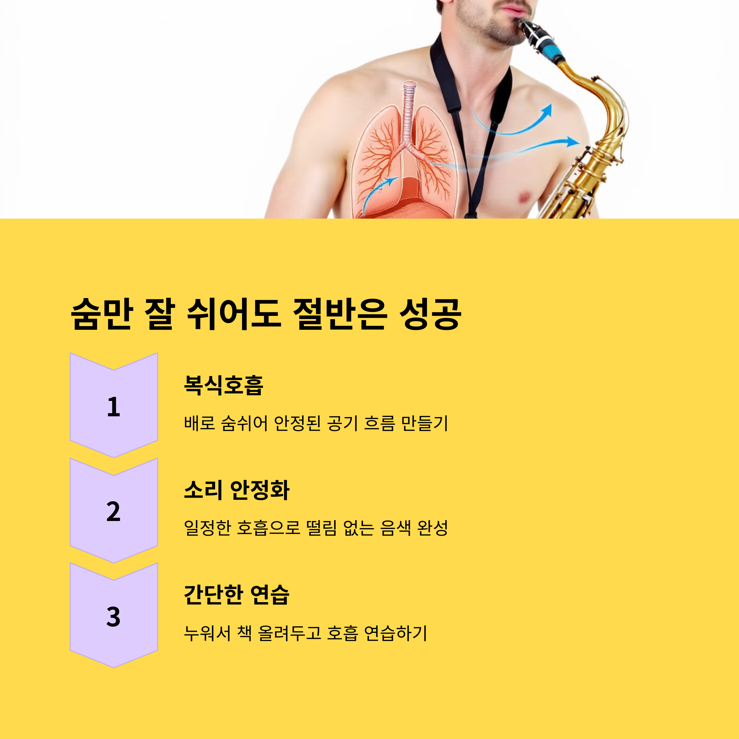 호흡 조절 실수 바른 호흡법을 익히지 않으면 연주가 어렵습니다.
