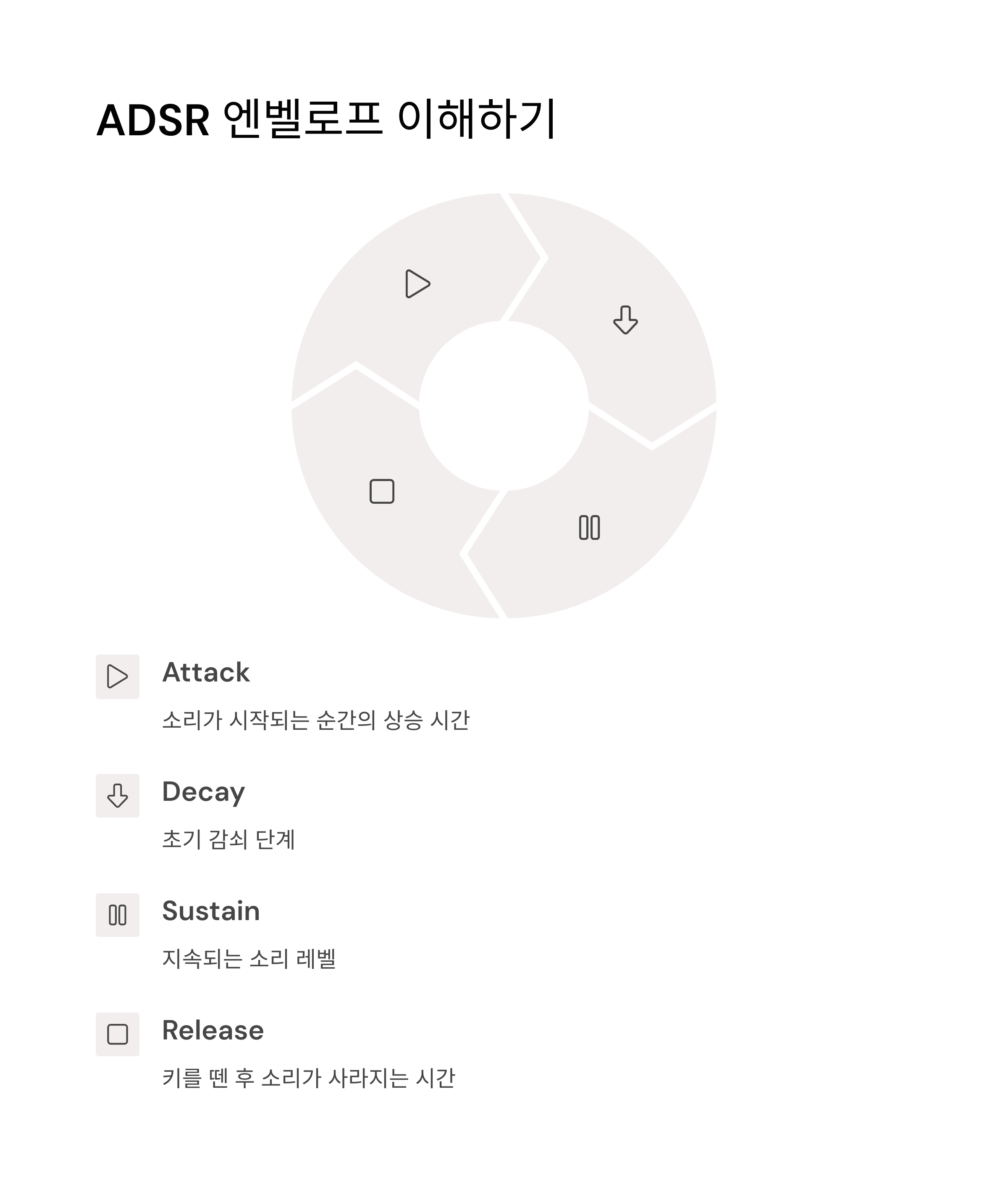 ADSR 소리의 시작과 끝을 조절하는 시간적 구조입니다.