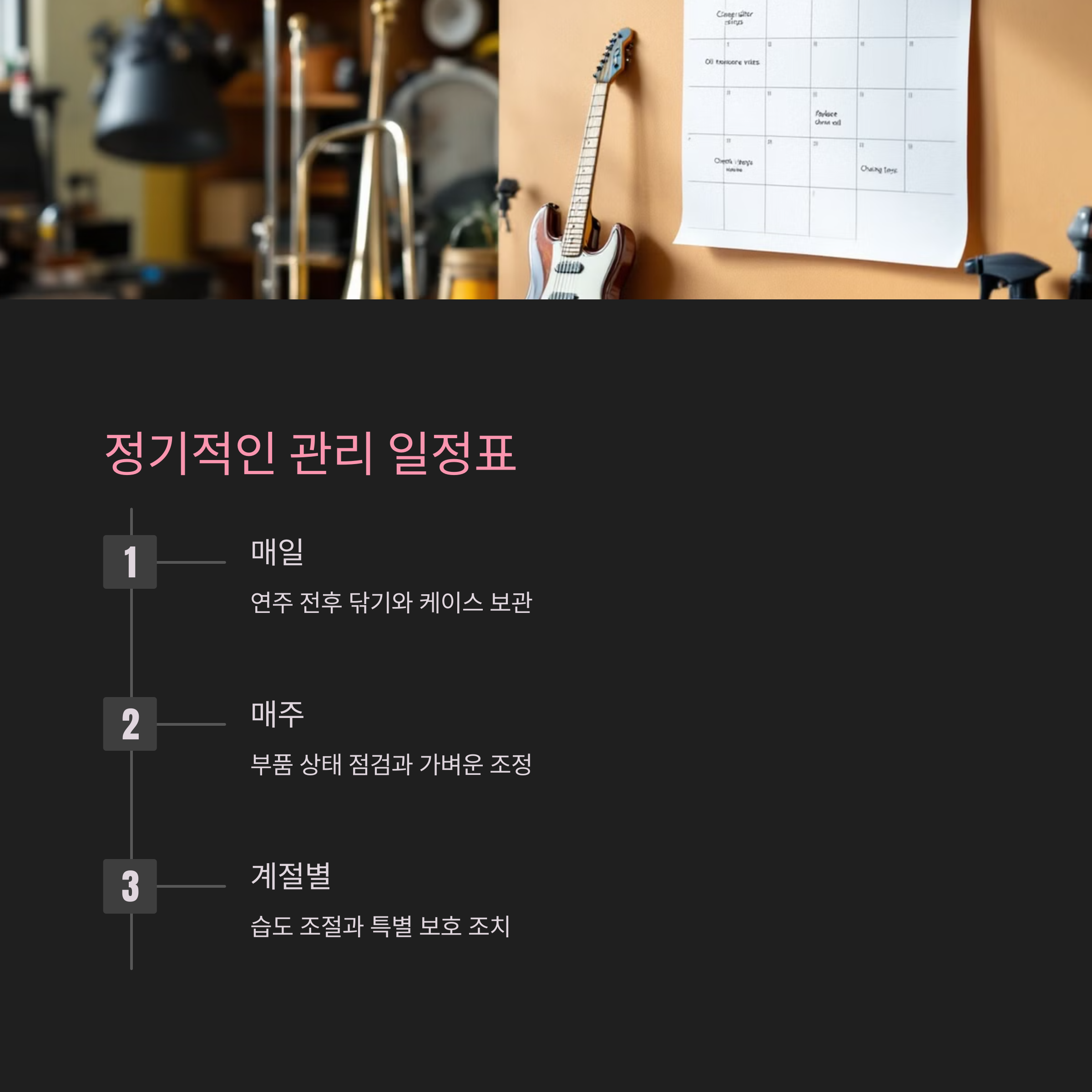 악기 수리나 관리에 대한 여러분의 팁이 있다면 댓글로 함께 나눠주세요. 서로의 경험이 모여 더 풍부한 정보를 만들 수 있습니다. 자주 겪는 고장 유형이나 해결 방법을 공유해주세요!