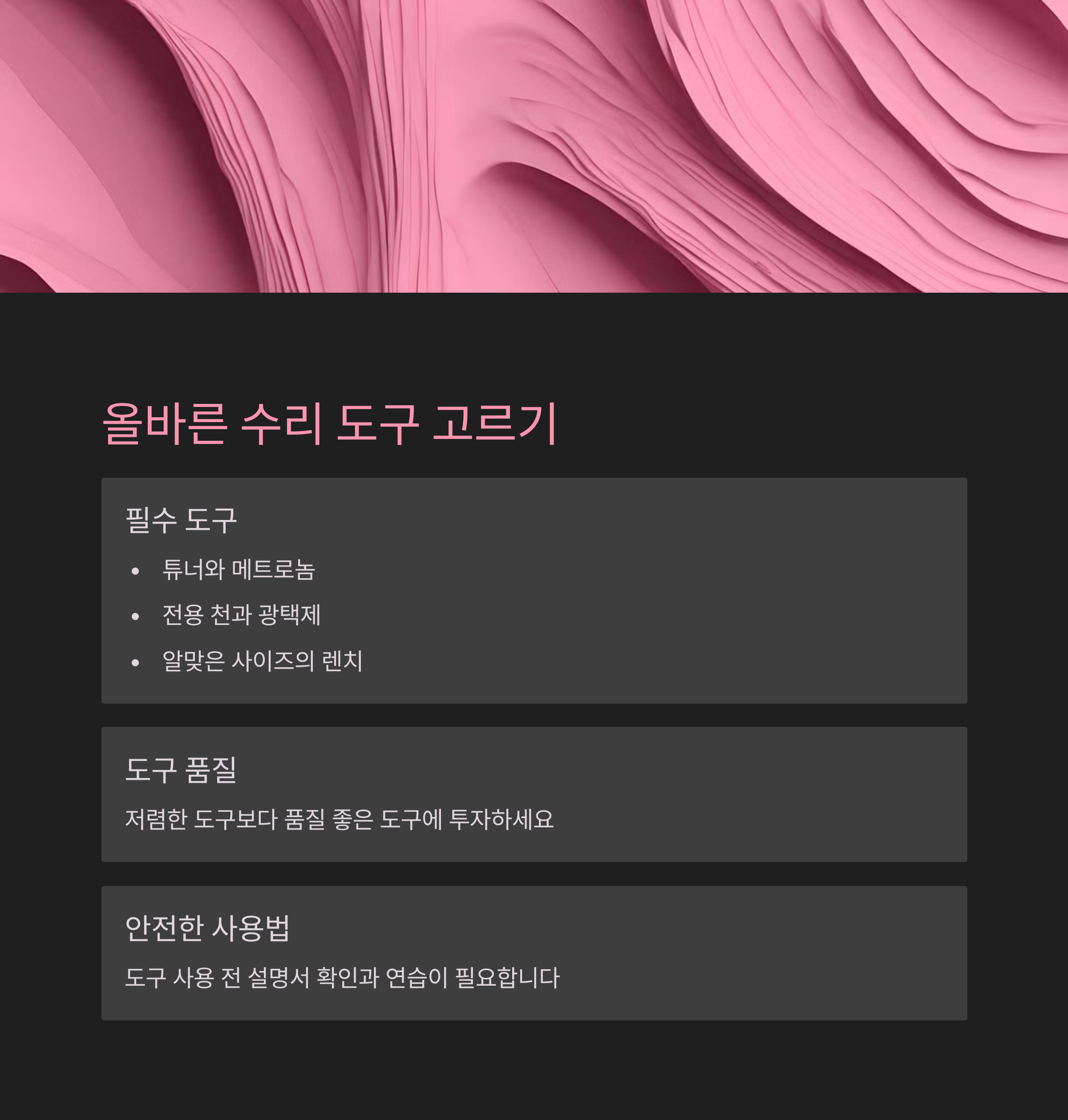 | 자가 수리 | 전문가 수리 | 수리 도구 |