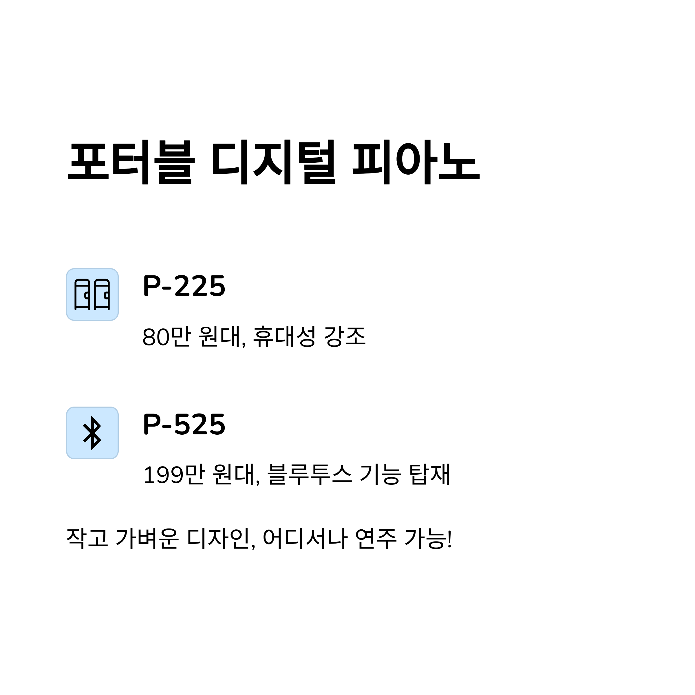 전자피아노는 단순한 악기가 아니라 오랜 시간 함께할 동반자입니다. 신중하게 비교하고 선택하여 만족스러운 연주 경험을 누려보세요!