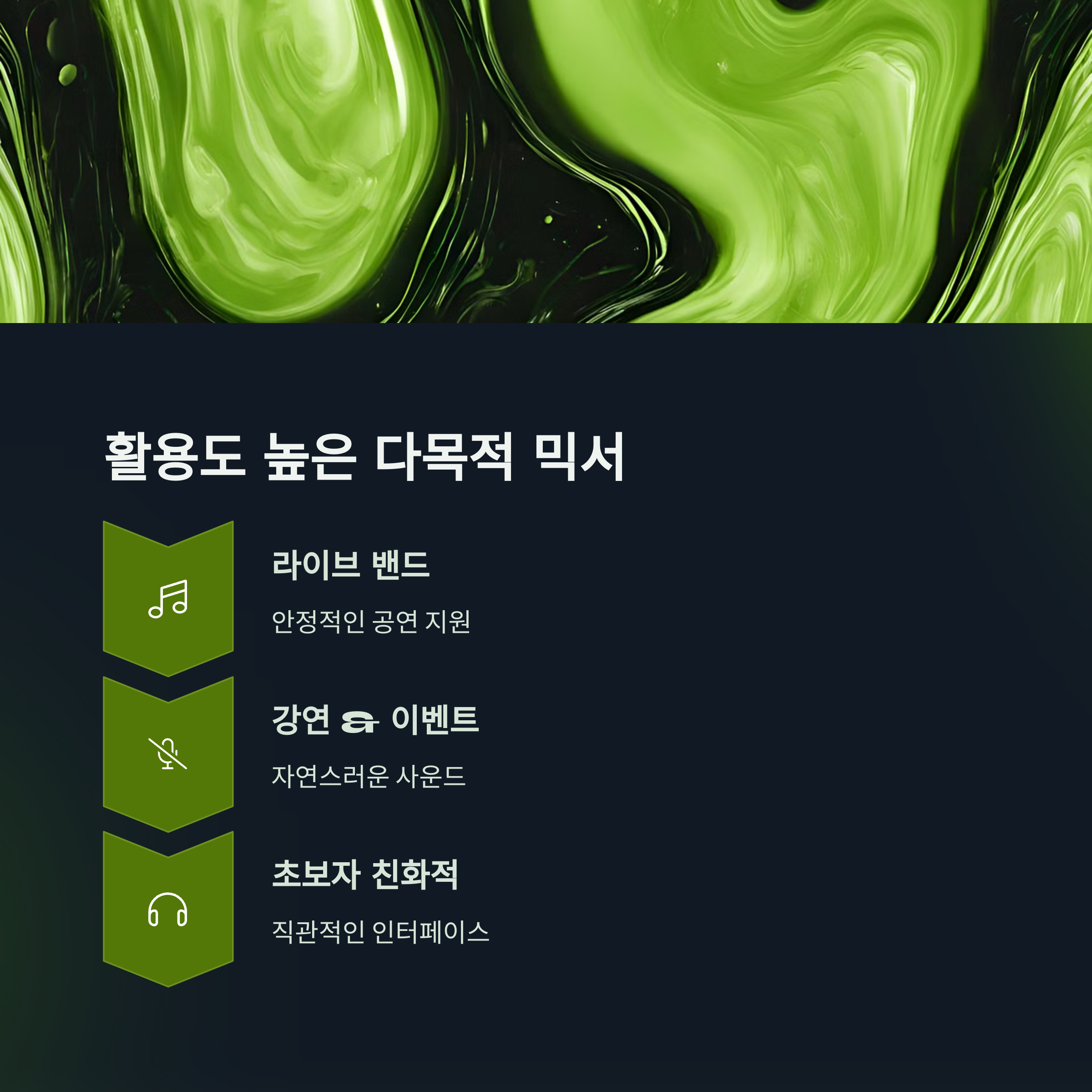 라이브 밴드 공연에서 보컬과 악기 소리를 균형 있게 믹싱할 수 있는 기능을 제공합니다. - 스튜디오 녹음