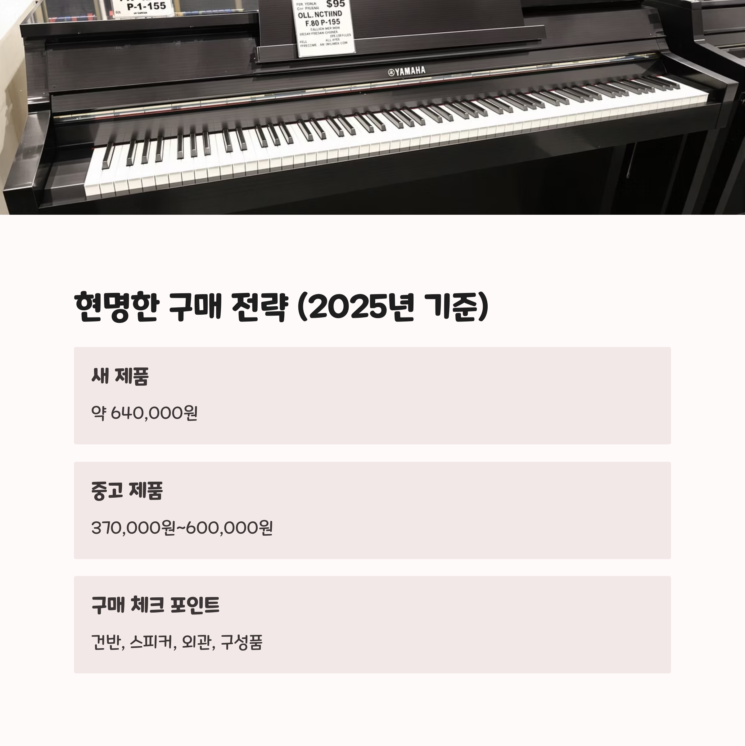 - 건반 상태: 눌렀을 때 소리가 고르게 나는지 확인.