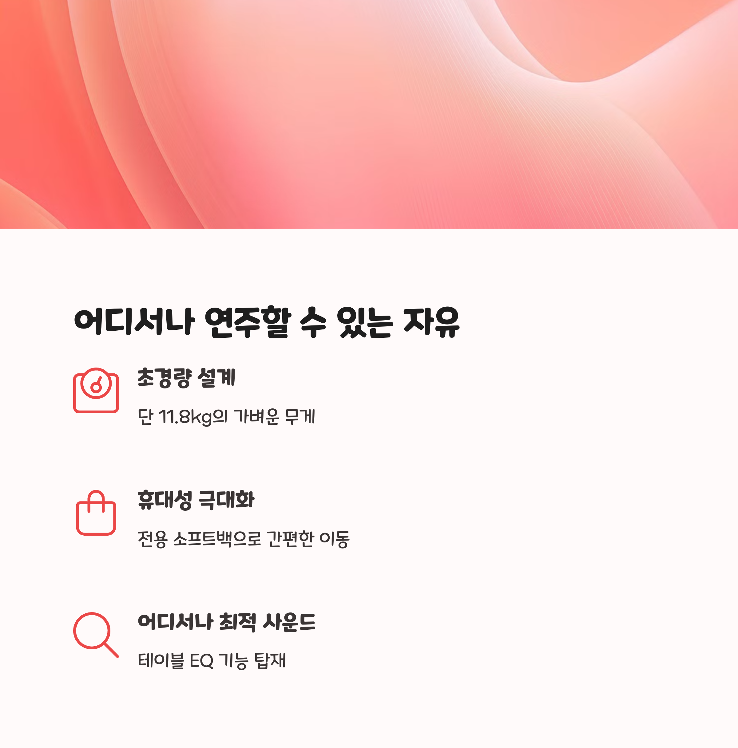 이러한 사양은 사용자가 마치 어쿠스틱 피아노를 연주하는 것 같은 자연스러운 터치와 사운드를 제공합니다.