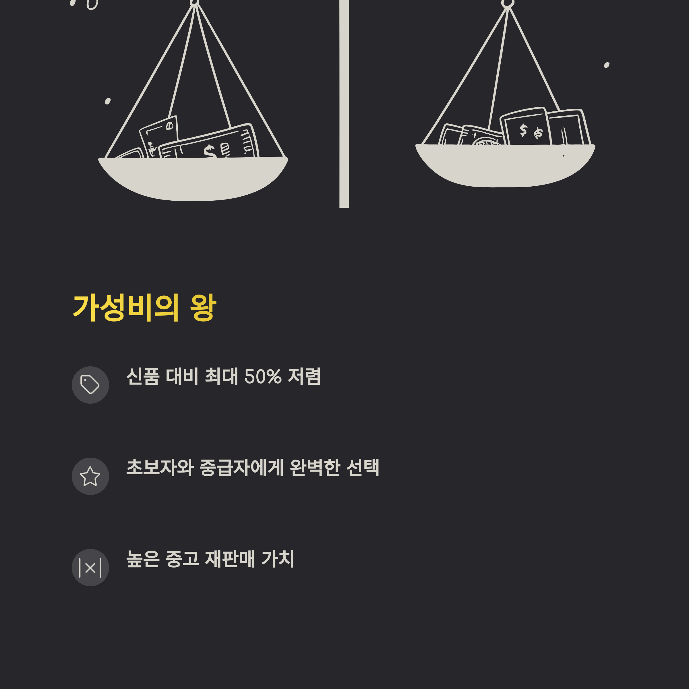 상태만 괜찮다면 신제품 못지않은 성능을 발휘합니다. 특히 입문자에게는 가성비 높은 선택이 될 수 있습니다.