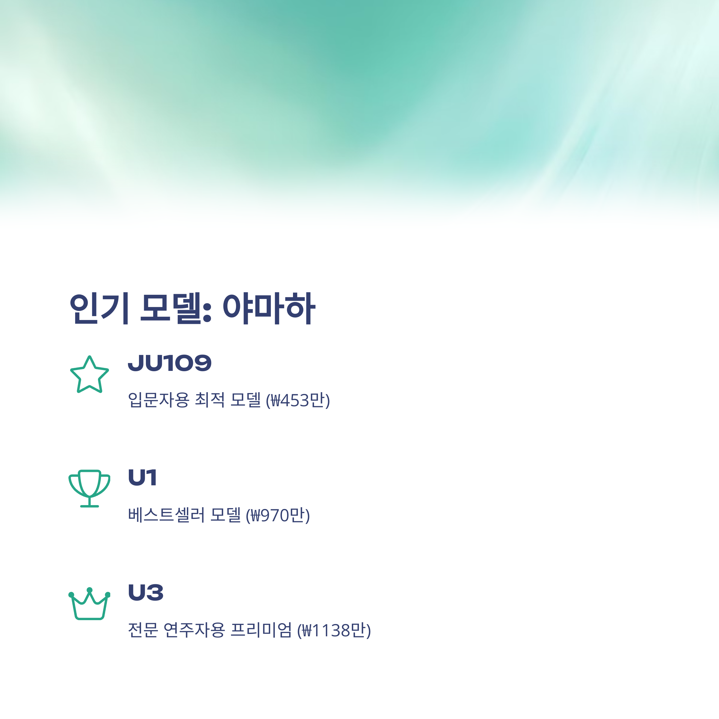 | 야마하 U3 | 약 ₩1138만 | ₩350만~₩500만 |