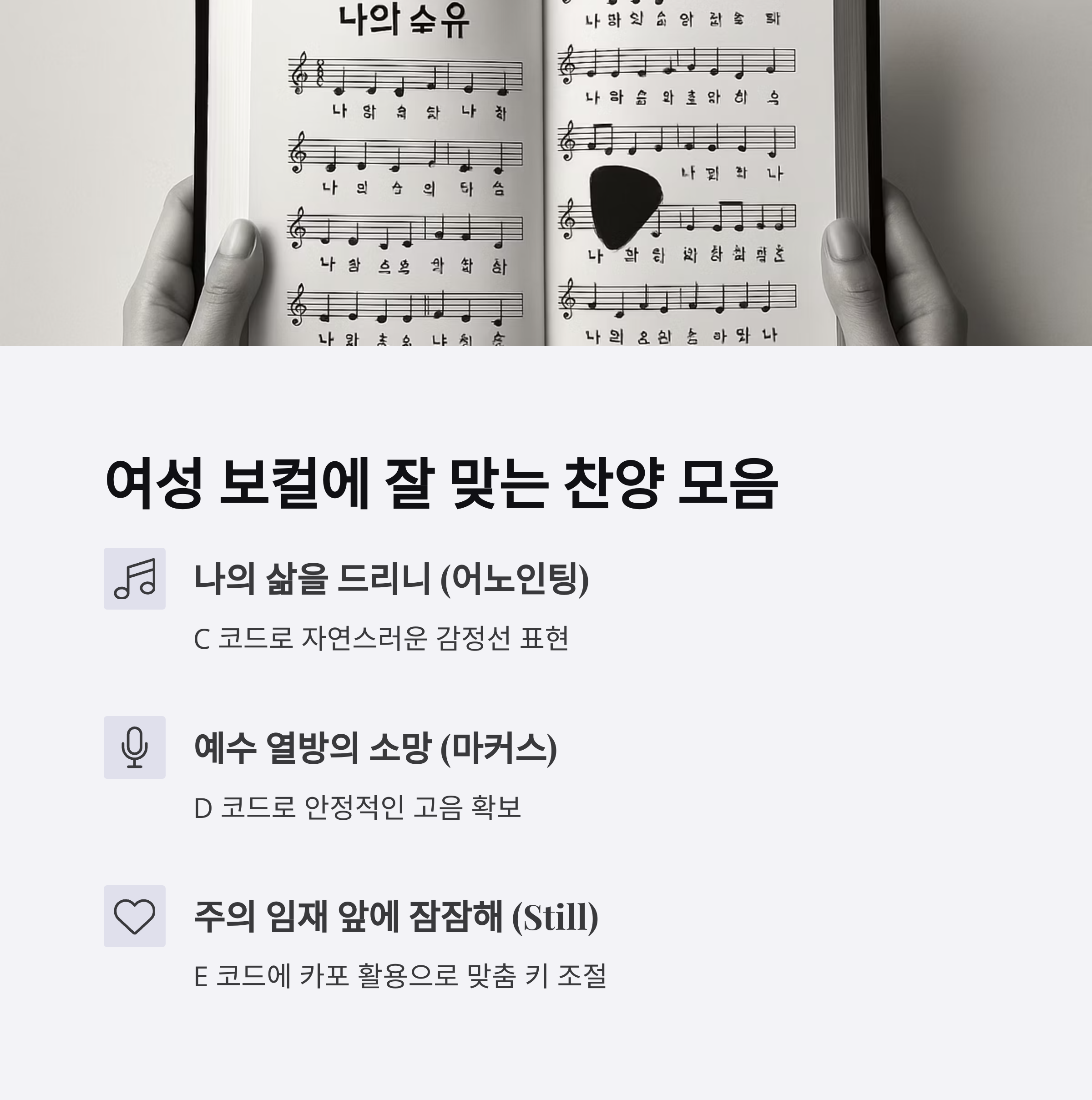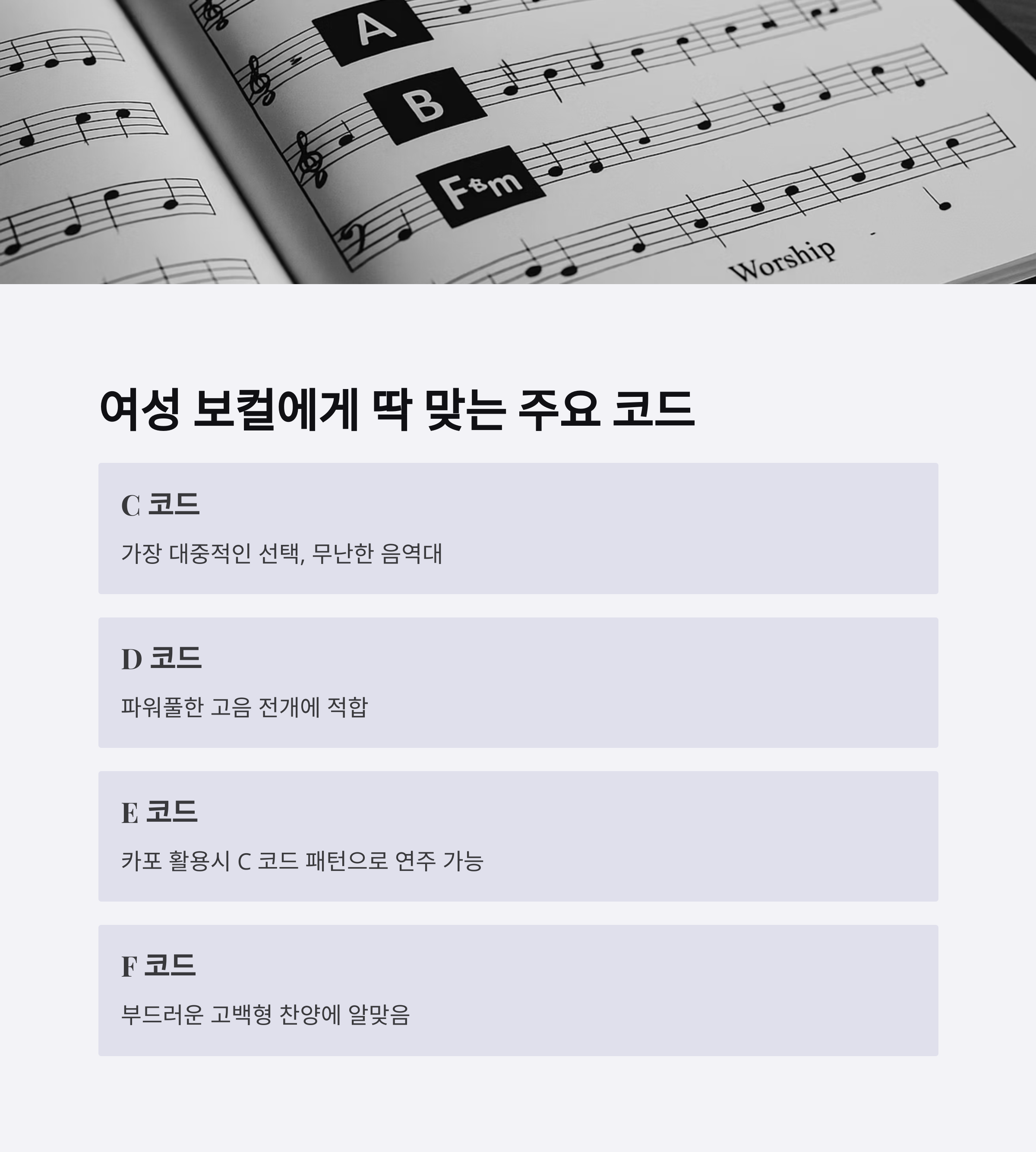 여성 보컬용 찬양 코드 추천 – 부드럽고 안정적인 음역의 코드 선택 가이드