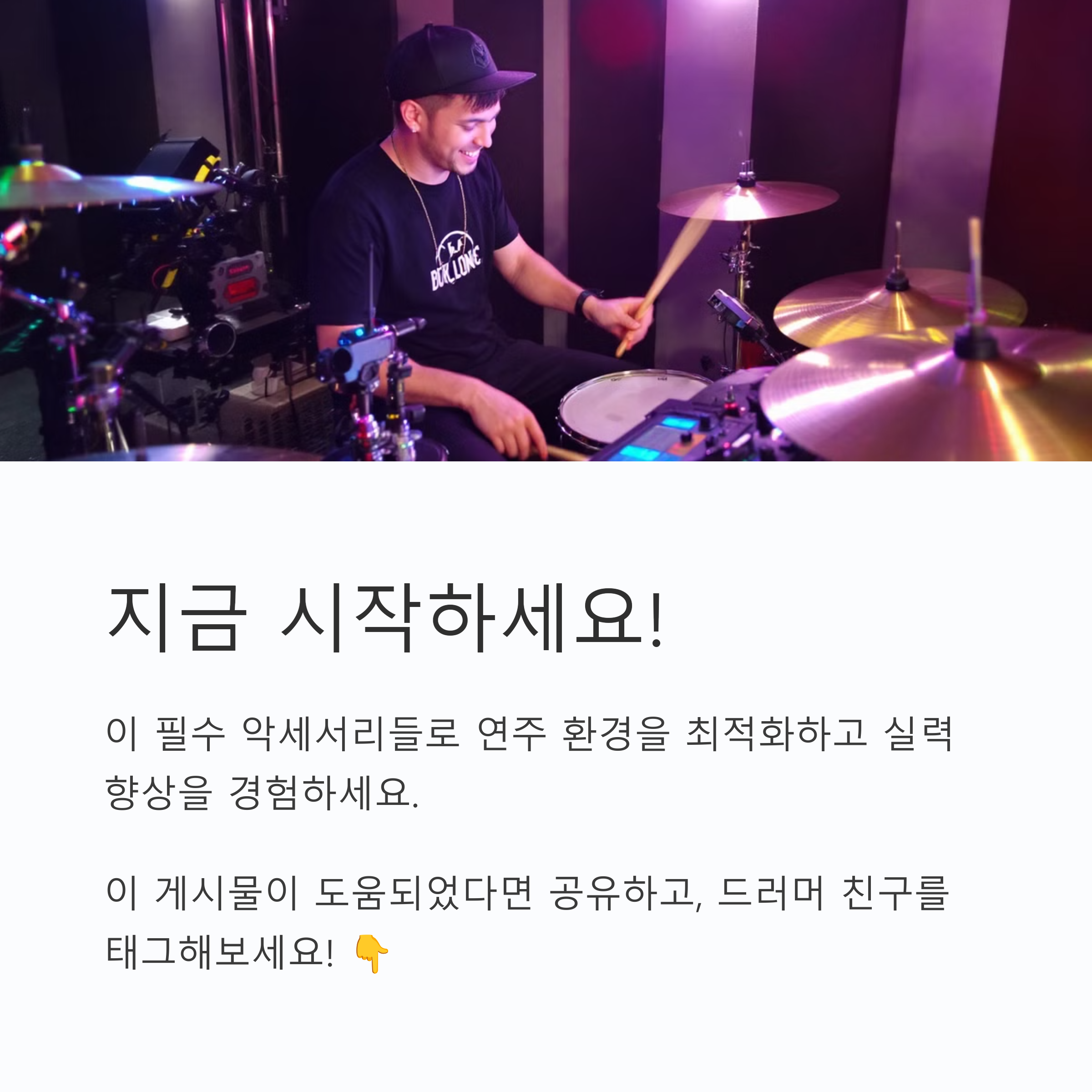 전자 드럼 연습 시 자주 사용하는 악세서리는 무엇인가요? 혹시 오늘 소개된 아이템 외에 추천하고 싶은 제품이 있다면 댓글로 함께 공유해주세요! 다양한 의견은 모두에게 큰 도움이 됩니다.