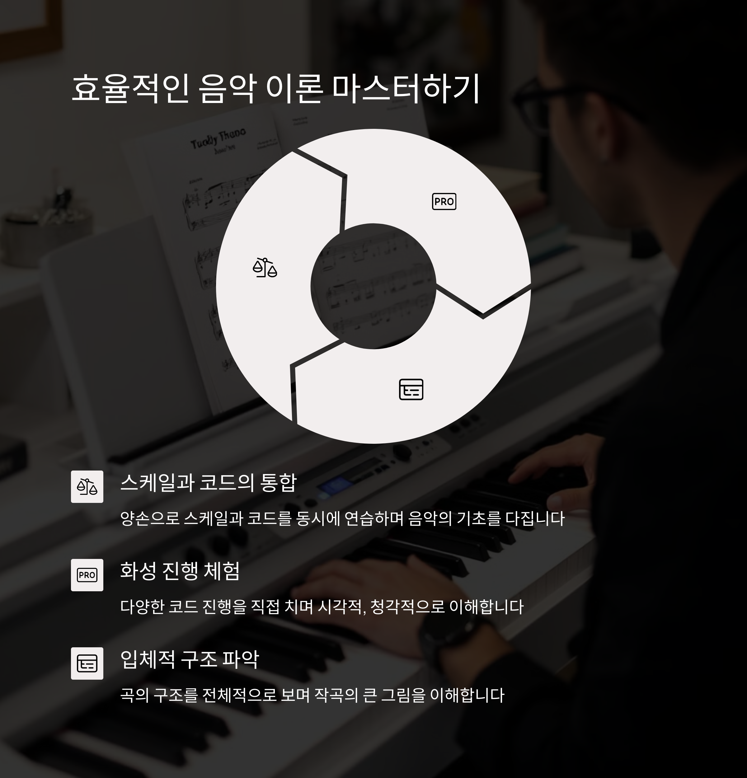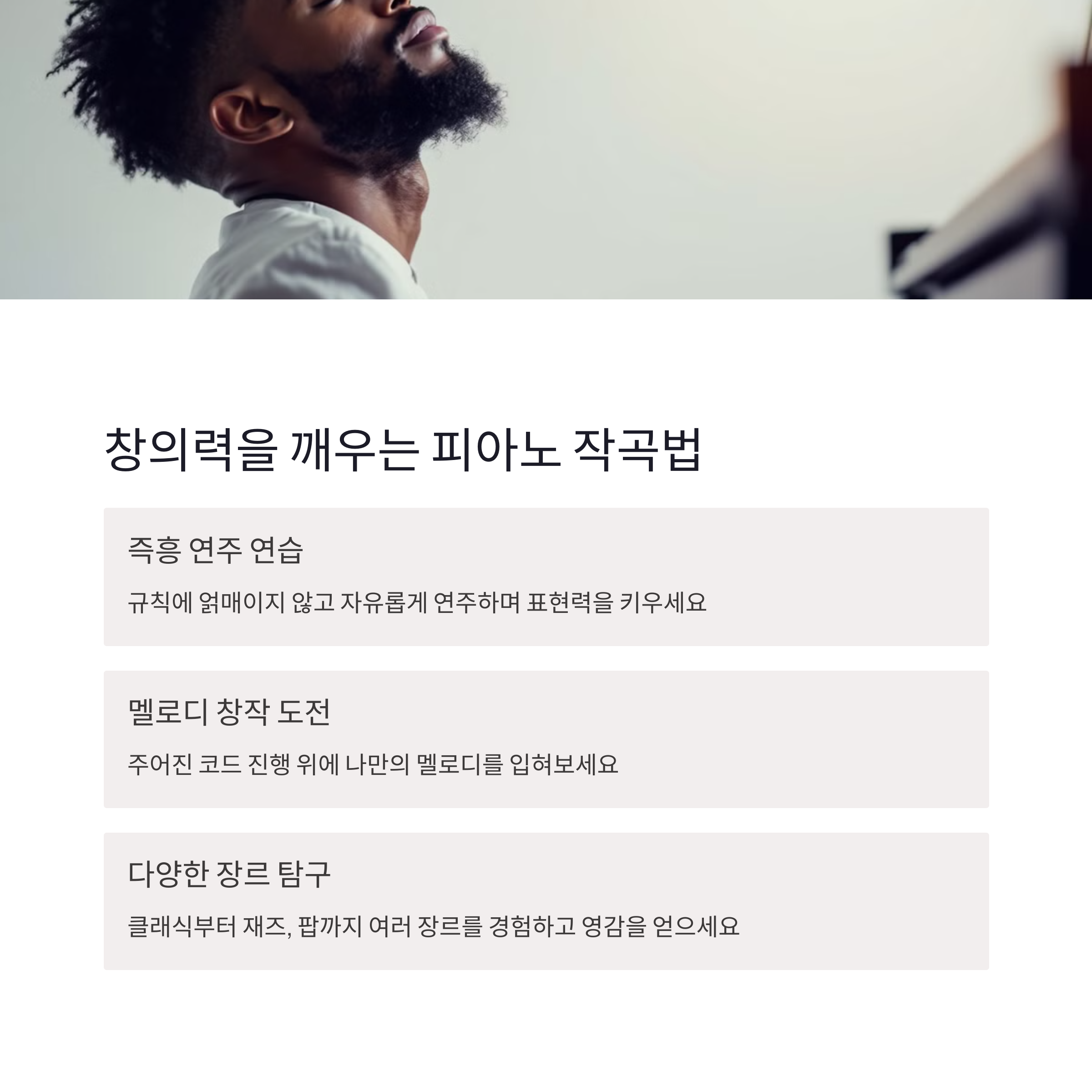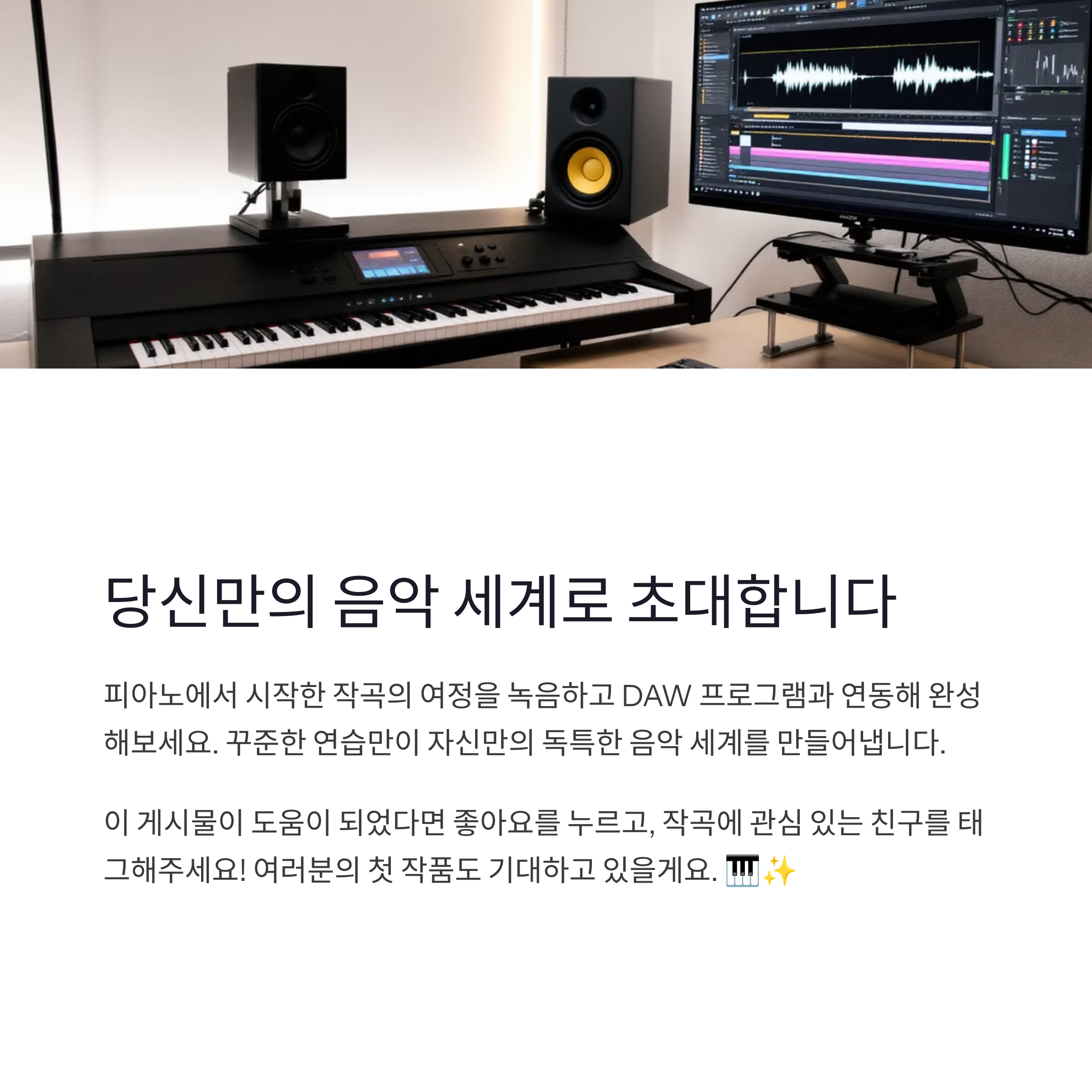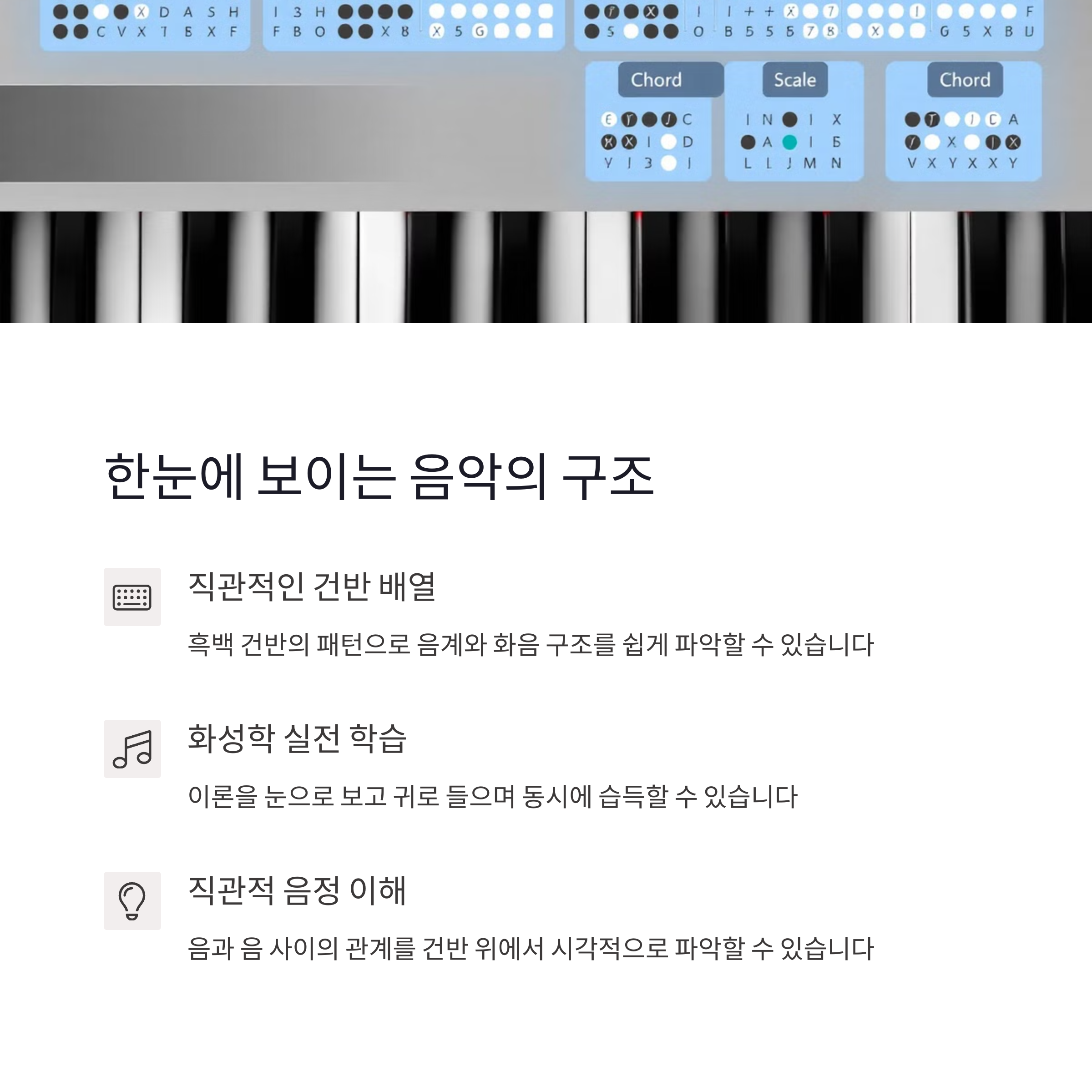 | 작곡 입문자에게 피아노란? | 피아노는 시각적, 청각적 이해를 동시에 돕는 도구입니다. |