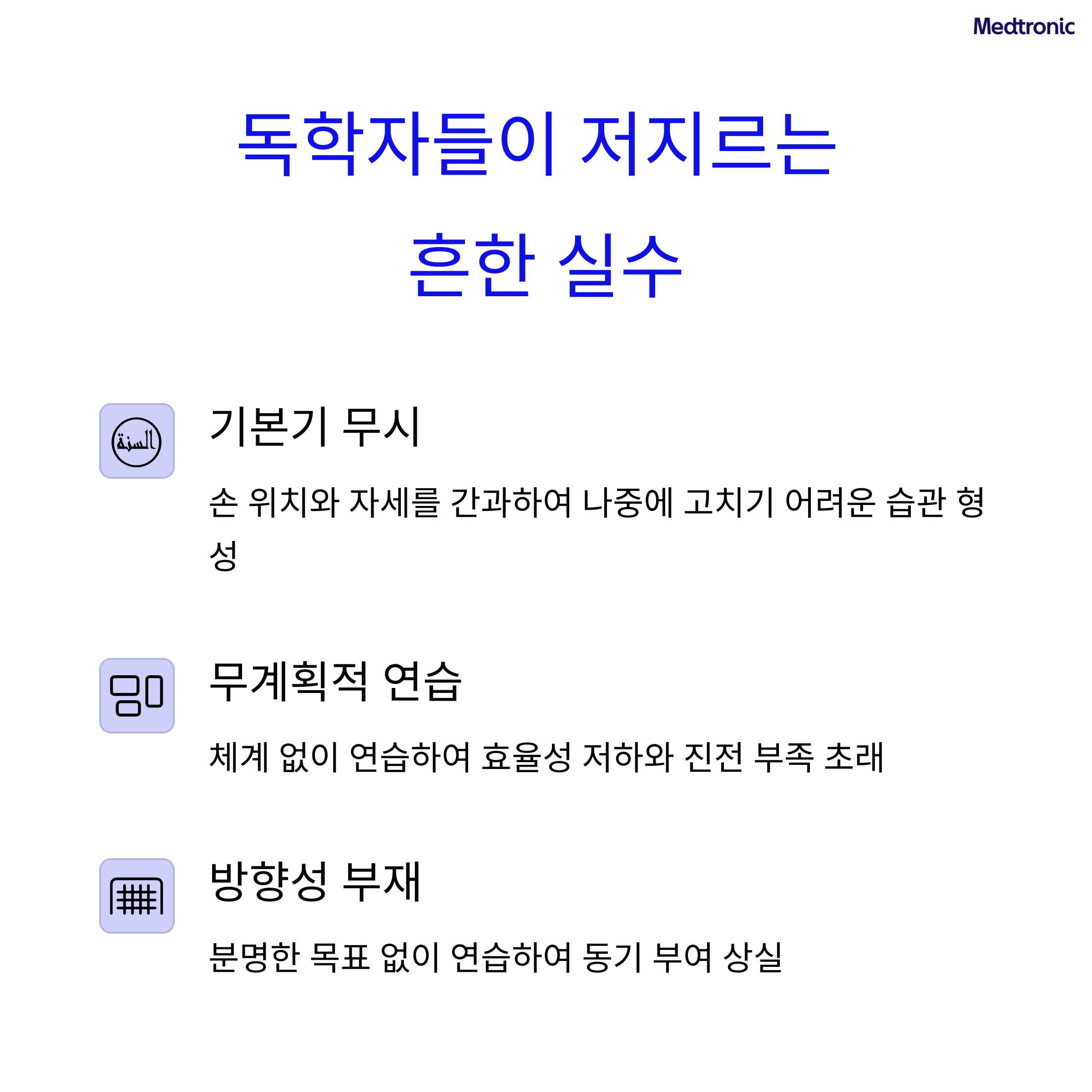 피아노는 감성과 테크닉이 함께 어우러지는 예술입니다. 하지만 처음 피아노를 독학하려는 분들 중에는 열정을 가지고 시작했다가 생각보다 빨리 포기하는 경우가 많습니다. 이는 단지 의지 부족 때문만이 아닙니다. 학습 방향을 잘못 잡거나 중요한 기본기를 간과하는 등의 초보자들이 자주 범하는 실수들이 원인이 되곤 합니다. 피아노는 누구나 배울 수 있지만, 잘못된 방법으로 연습하면 오히려 실력이 퇴보할 수 있습니다. 이러한 실수들을 미리 알고 대비한다면, 훨씬 더 효과적이고 즐겁게 피아노 실력을 키워갈 수 있습니다. 이번 글에서는 피아노 독학을 시작하는 분들이 가장 흔히 저지르는 실수들에 대해 하나씩 짚어보고, 그것을 어떻게 극복할 수 있는지도 함께 안내드리겠습니다. 글을 끝까지 읽으신다면, 피아노 독학의 올바른 방향을 잡을 수 있을 것입니다.