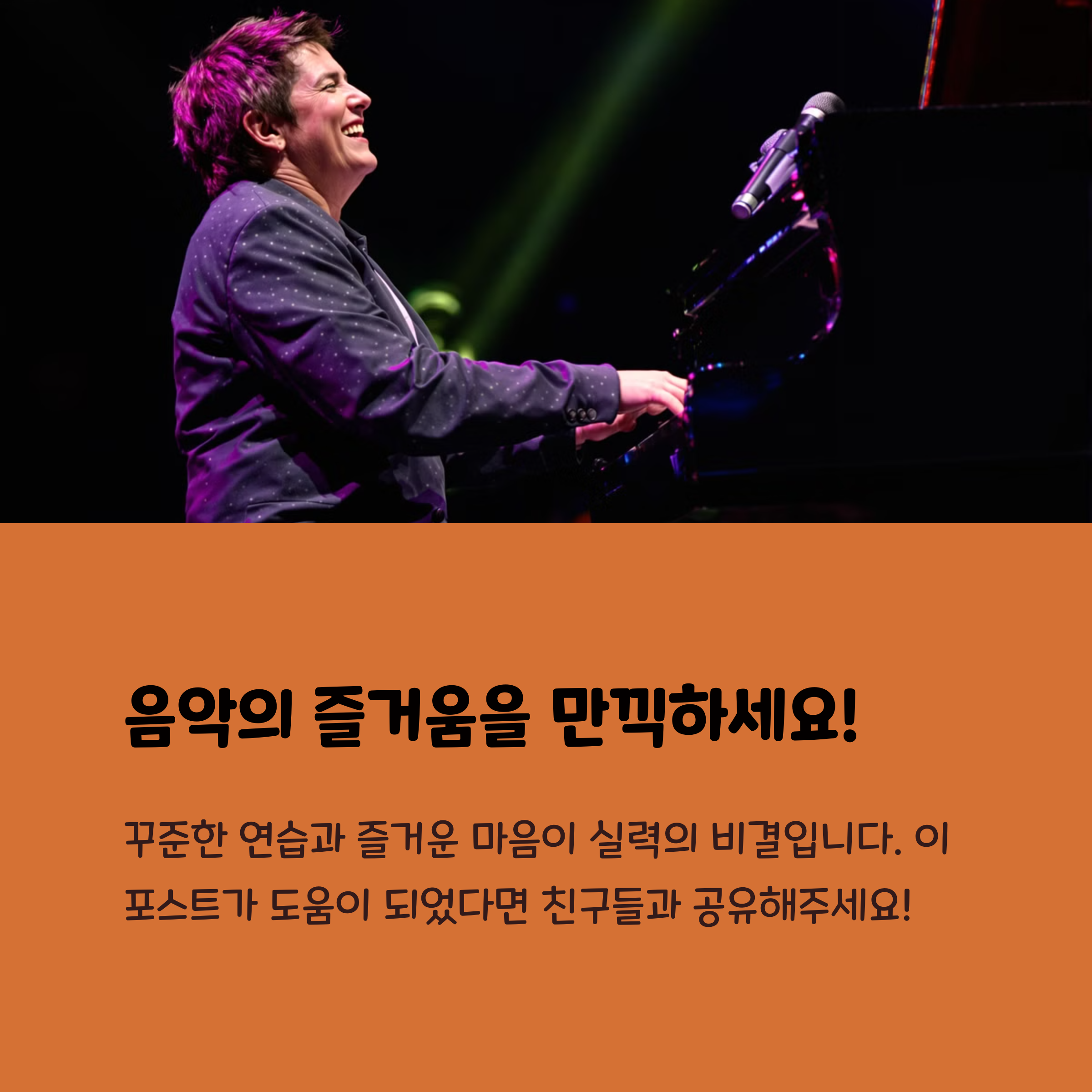 피아노 코드를 익히는 과정은 결코 단기간에 완성되지 않지만, 꾸준히 연습하고 다양한 음악에 적용해 보는 과정 자체가 음악적 성장을 이루게 합니다. 오늘 소개한 코드의 기본 개념과 활용 팁을 바탕으로, 나만의 음악 세계를 한 단계 끌어올릴 수 있길 바랍니다. 처음에는 손이 잘 따라가지 않더라도, 하루하루 쌓이는 경험이 여러분을 더욱 자유로운 연주자로 만들어 줄 것입니다. 무엇보다 중요한 건 ‘즐기는 마음’입니다. 피아노 앞에서 매일 새로운 도전을 즐기며, 음악을 통한 힐링과 성취감을 느껴보시길 바랍니다.