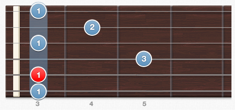 - 1번 줄~5번 줄: 3프렛 - 검지 (바레 처리)