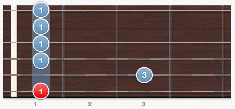 - 3번 줄: 1프렛 - 검지 (바레)