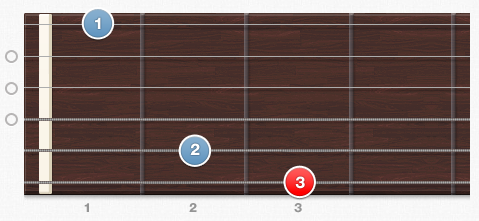 - 중지 손가락: 6번 줄(E)의 3프렛을 누릅니다.