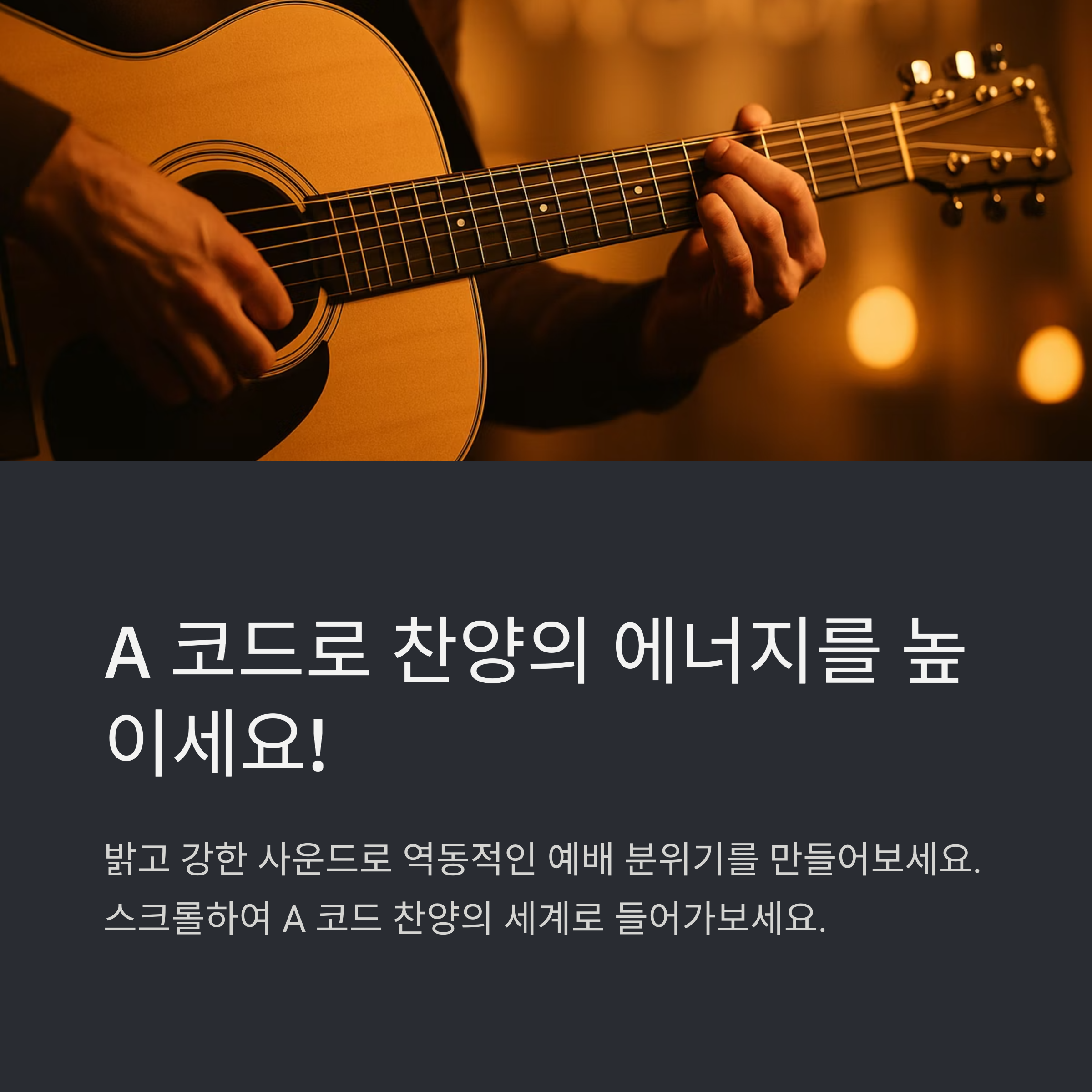 A 코드 찬양 추천은 열정적이고 진취적인 예배를 위한 최고의 선택 중 하나입니다. 기타 연주자에게는 쉽고 강렬한 사운드를 제공하며, 남성 보컬에겐 편안한 음역대를 보장합니다. 오늘 소개한 곡들을 연습하며 찬양팀의 역동적인 분위기를 만들어 보세요.