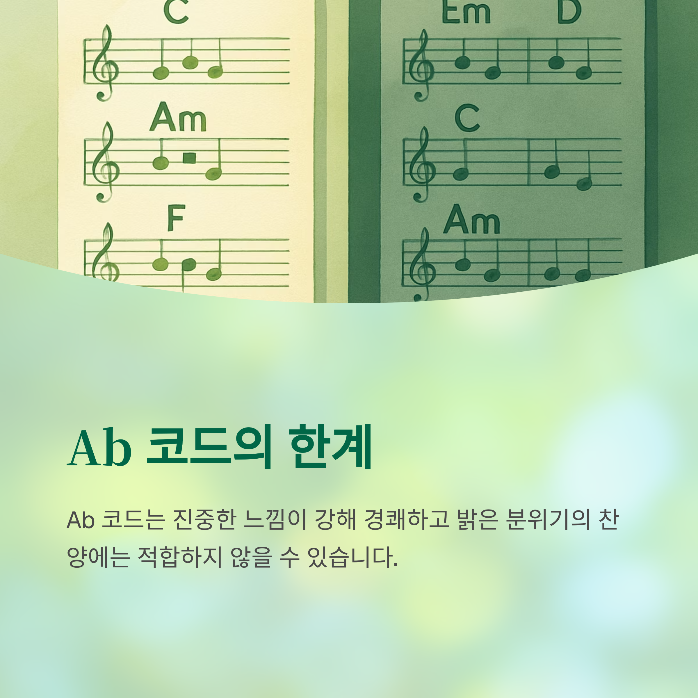 Ab 코드는 진중한 느낌이 강해, 경쾌한 곡에는 맞지 않을 수 있습니다.