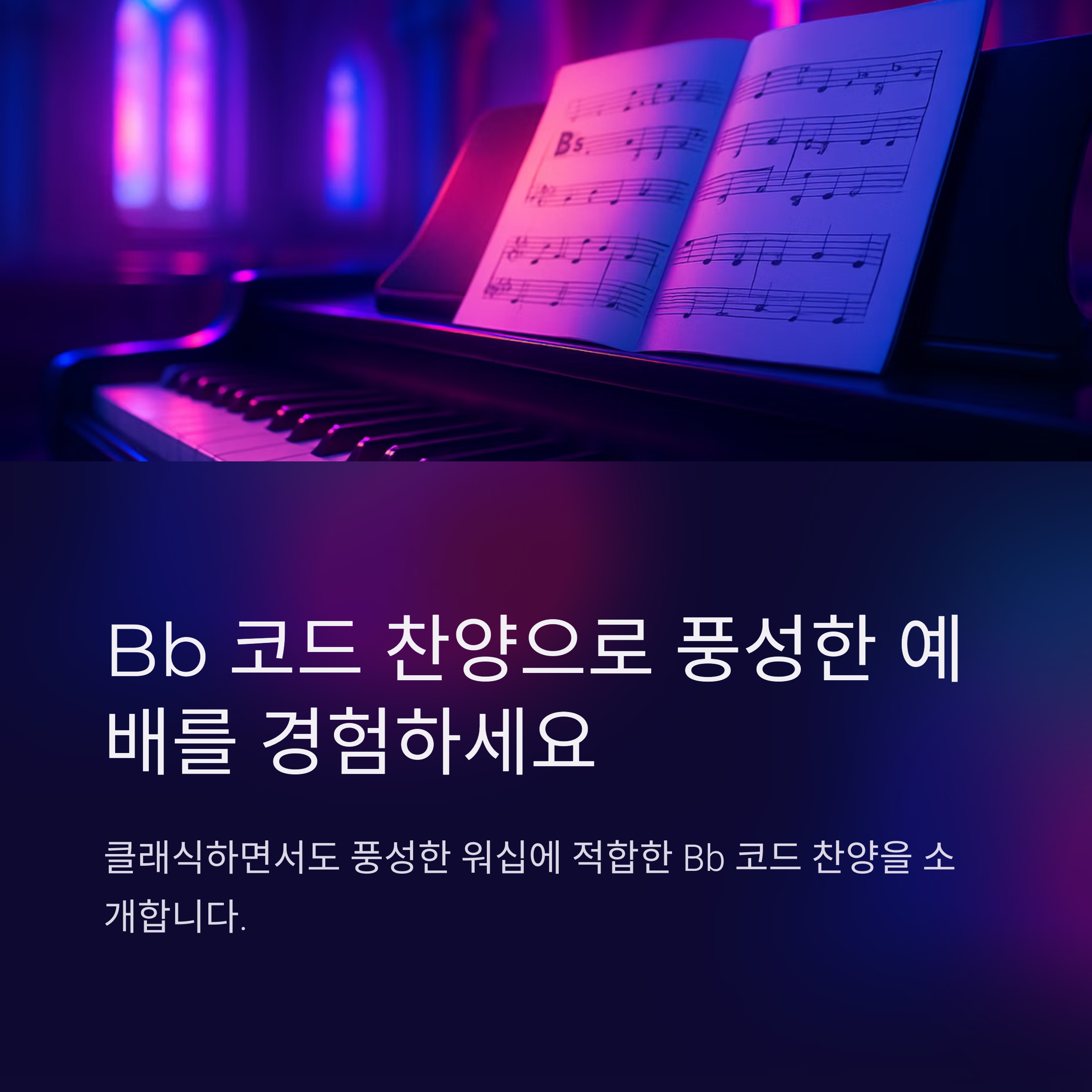 Bb 코드는 전통 찬송과 워십 스타일 모두에서 활용 가능한 중간 톤의 코드입니다. 특히 브라스 악기나 합창과 함께할 때 조화롭게 어우러지며, 피아노 연주자에게 친숙한 구조입니다. 오늘은 Bb 코드 찬양 추천을 중심으로 은혜롭고 품격 있는 예배를 위한 곡들을 소개합니다.